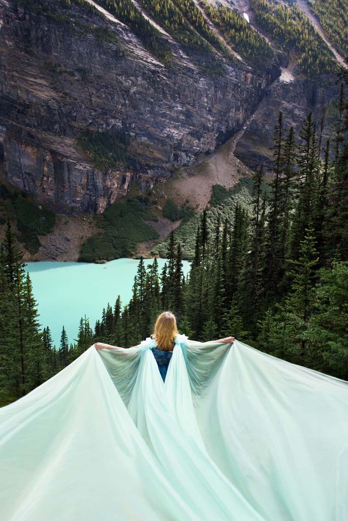 In 2011, Velkova participated in a Banff artist residency titled The Soiree Retreat – A bit of a Chekhovian situation, led by Icelandic artist Ragnar Kjartansson. The Soiree Retreat unpacked Situationist ideologies, focusing on performance and spectacles imbued with romanticism, melodrama and irony. During her participation in the Banff residency, she produced the two photographic works, Landscape with a Horse at Bow River, and Lake Louise Scene. The Disneyfied character Velkova portrays in the photographs transcends any particular identity, and similar to the Situationists’ ideologies, her images blur the line of ‘having’ versus ‘appearing to have.’